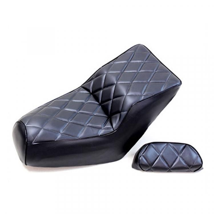 ■シートの皮はレザー調(艶なし)生地、ダイヤカットの縫い目ステッチ入り 。