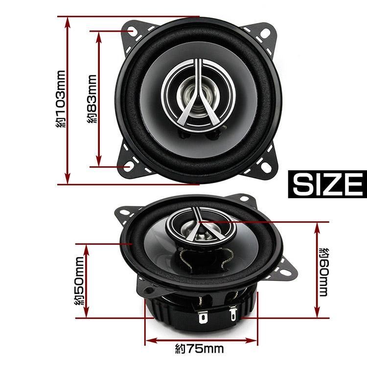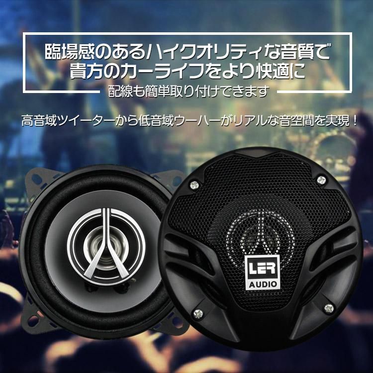 2ウェイスピーカー 10cm 4インチ コアキシャル スピーカー 黒色 2個セット