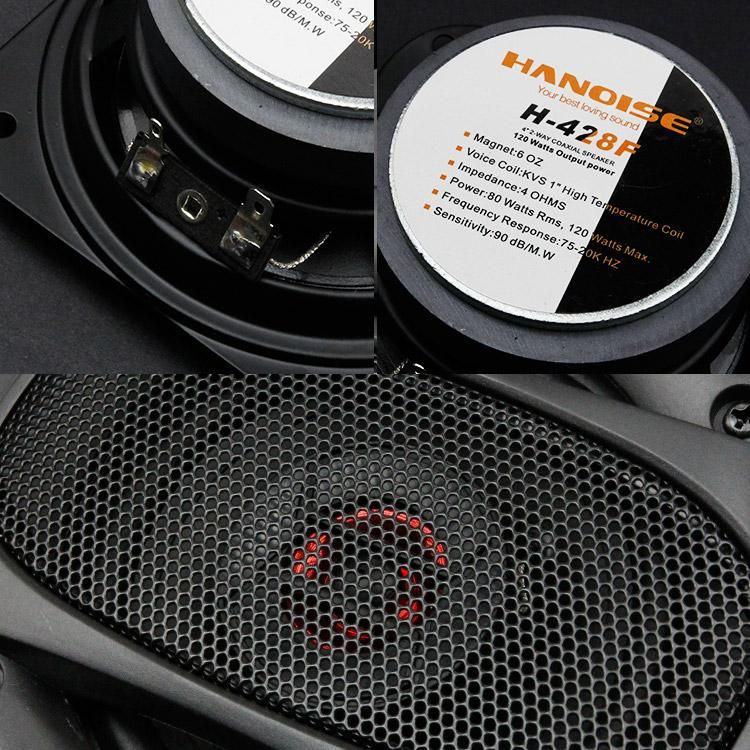 ■インピーダンス:4Ω、最大出力120W、RMS:80W、周波数帯域は75Hz〜20KHzと広く、音割れなく音楽を楽しむことも可能。