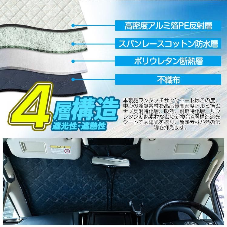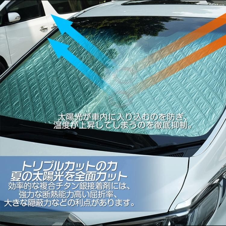 ■車内温度上昇を抑える、断熱、UVカット、日差しカット、コンパクトに収納できる 。真夏用フロントサンシェードで、真夏の太陽の照り付けから愛車を守りましょう。
