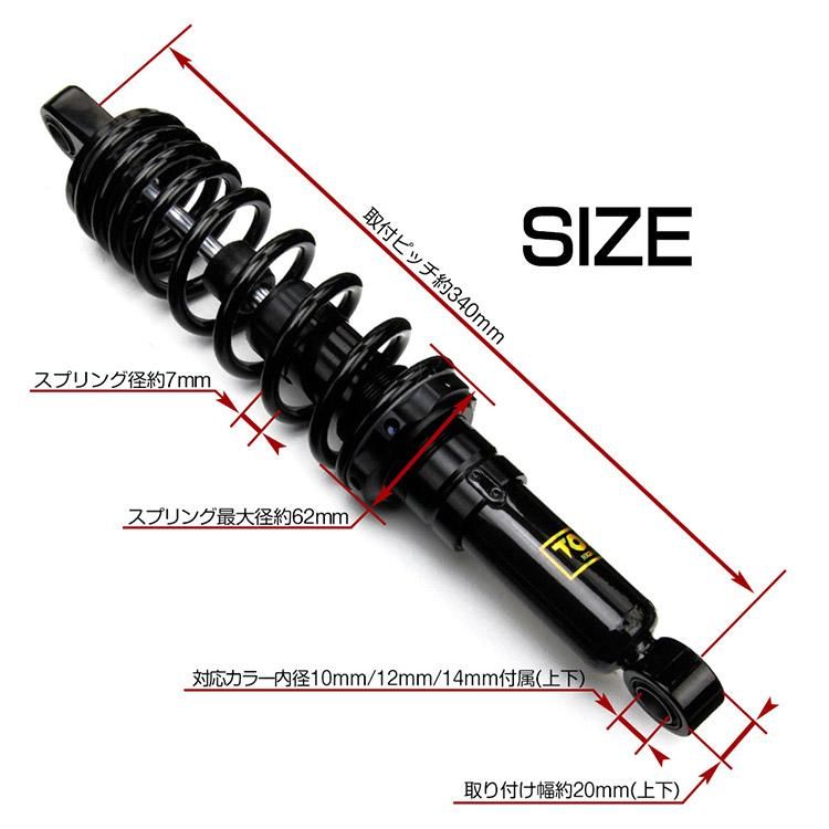 【新製品】 汎用 バイク 電動バイク用 リアサスペンション リアショック 340mm リヤサス 無段階調整スプリングプリロード ブラック 黒 (トクトヨ)Tokutoyo