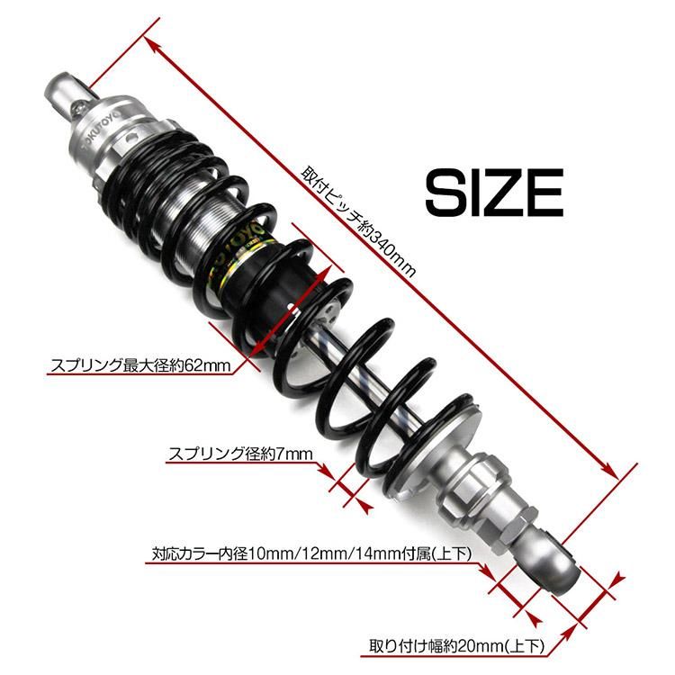 【新製品】 汎用 バイク 電動バイク用 リアサスペンション ガス ショック 340mm リヤサス 無段階調整スプリングプリロード ブラック 赤 (トクトヨ)Tokutoyo