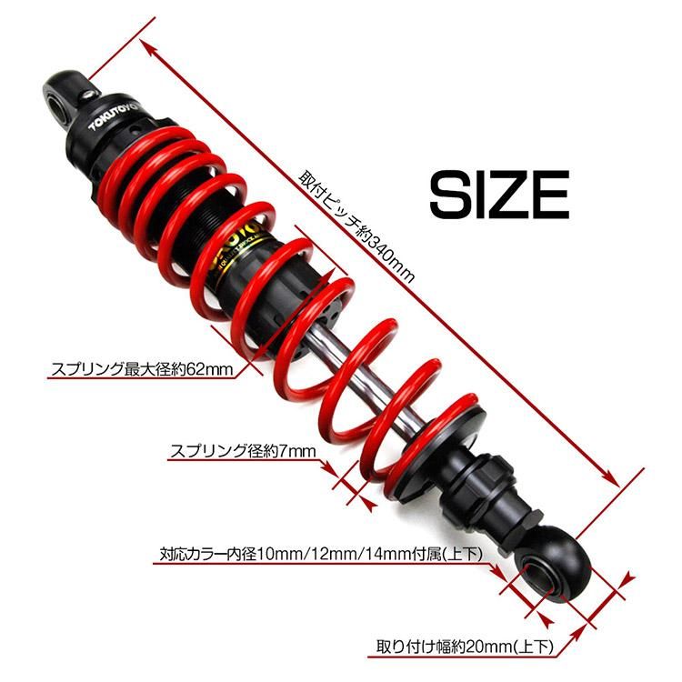 【新製品】 汎用 バイク 電動バイク用 リアサスペンション ガス リアショック 340mm リヤサス 減衰力調整機能 ブラック 赤 (トクトヨ)Tokutoyo