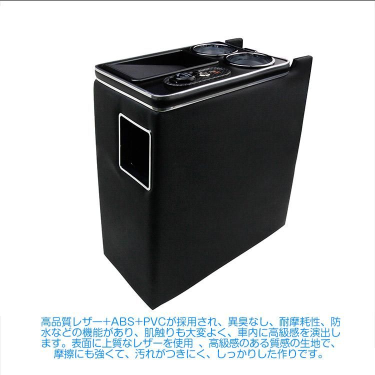 ■表面に高級レザーを使用し、柔らかくて肌触りの良い仕上がりです。コンソールボックスにLED イルミネーション が付属しているので、車内の高級感が増しドレスアップできます。