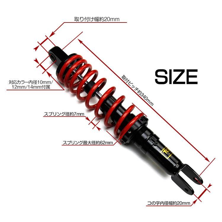 スズキ(SUZUKI) リアショック ZZ(インチアップスポーツ) AZ50R(CA1PB) 無段階調整スプリングプリロード リヤサス 280mm コの字 黒/赤 (トクトヨ)Tokutoyo