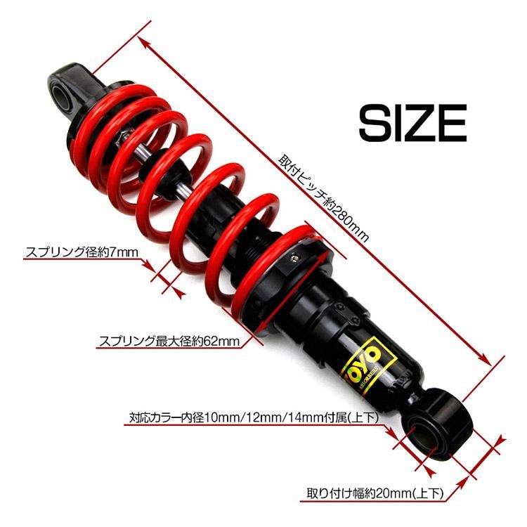 ホンダ(HONDA) リアショック モンキー 50 無段階調整スプリングプリロード Monkey リヤサス 280mm 黒 / 赤 (トクトヨ)Tokutoyo