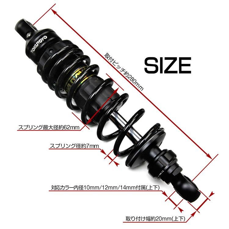 ホンダ(HONDA) ガス ショック モンキー 50 無段階調整スプリングプリロード Monkey リヤサス 280mm シルバー 黄 (トクトヨ)Tokutoyo
