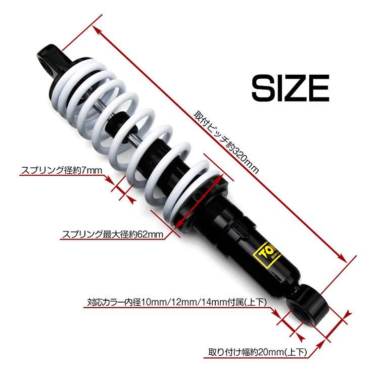 ヤマハ(YAMAHA) リアショック 無段階調整スプリングプリロード SR400 リヤサス 320mm 黒/白 (トクトヨ)Tokutoyo