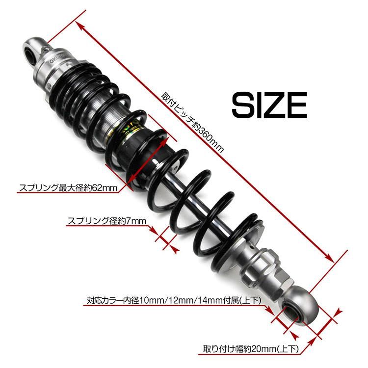 カワサキ(KAWASAKI) ガス リアショック 減衰力調整機能 W800 リヤサス 320mm ブラック 赤 (トクトヨ)Tokutoyo