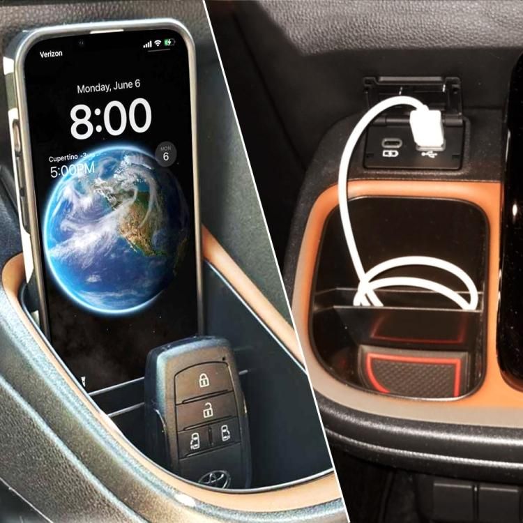 ■仕切りが付いているため、シフトサイドポケット内で 携帯電話や鍵などをスッキリ収納できます。また、滑り止めラバーマットを付属しており、運転中にアイテムが 落下したり傷ついたりすることを防止します。