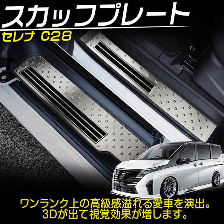 日産 新型 セレナ C28系 スカッフブレード ステップガード カスタムパーツアクセサリー Serena ステンレス製 シルバー 4P