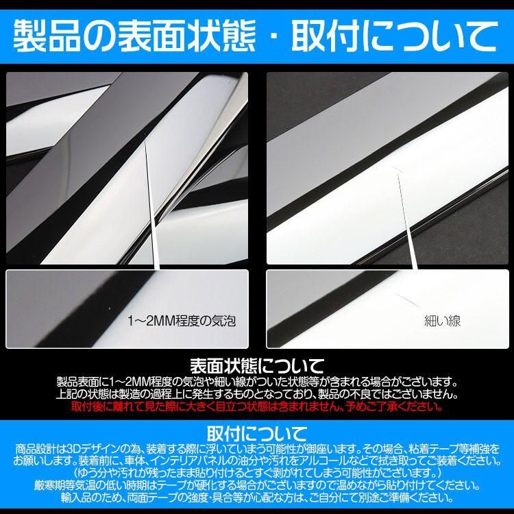 ■装着前に、車体、インテリアパネルの油分や汚れをアルコールなどで拭き取ってご装着ください。(ゆう分や汚れが残ったまま貼り付けるとすぐ剥がれてしまう可能性がございます。)