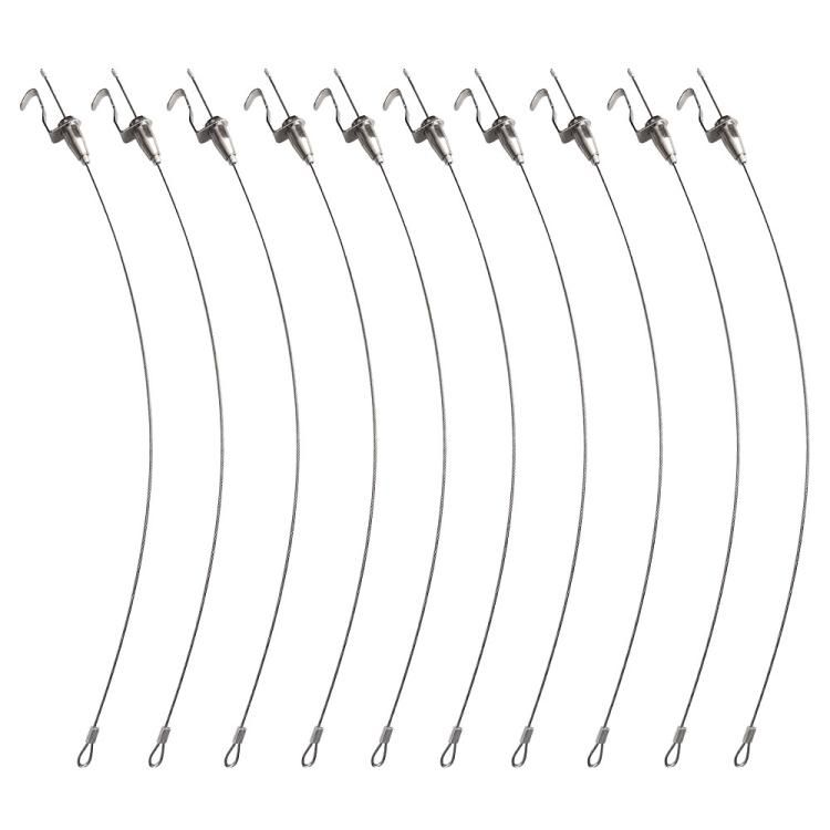 額縁 ピクチャーレール ワイヤーフック U型 耐荷重約20kg 自在金具付 径1.5mm (全長1.5m/10本セット)