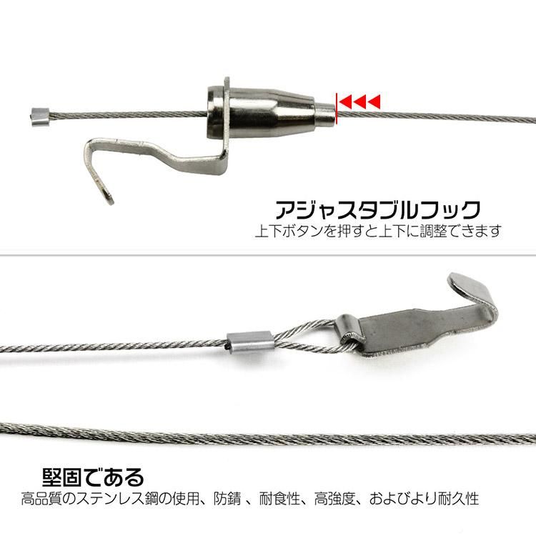額縁 ピクチャーレール ワイヤーフック L型 耐荷重約20kg 自在金具付 径1.5mm (全長1.0m/6本セット)1,339円(税込)