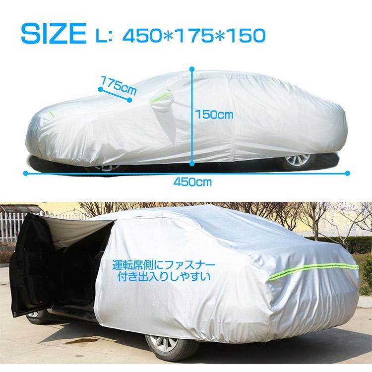 ボディーカバー 車カバー サイドのジッパー付き 防水防塵 紫外線や雪や強風対策 防風ロープ (M:450×175×150cm)