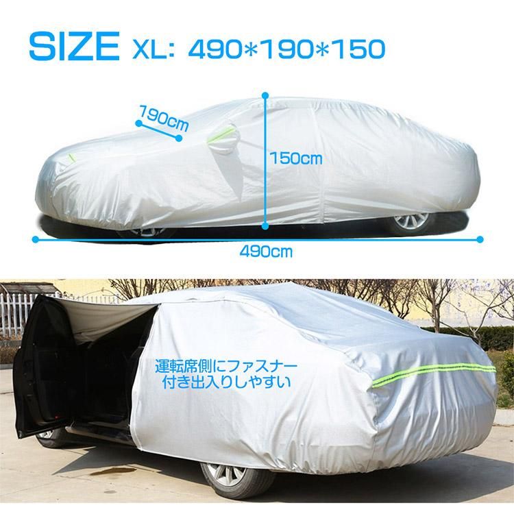 ボディーカバー 車カバー サイドのジッパー付き 防水防塵 紫外線や雪や強風対策 防風ロープ (XL:490×190×150cm)