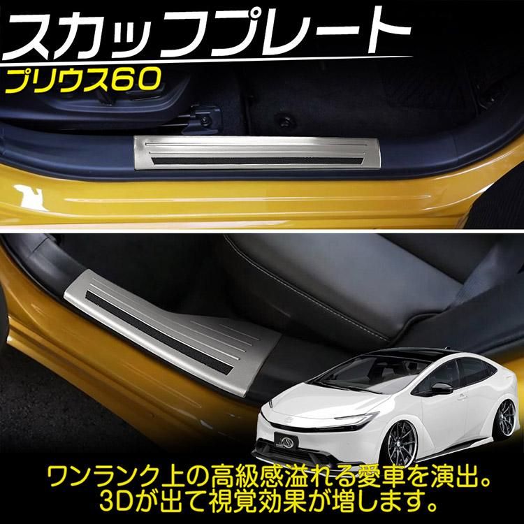 トヨタ PRIUS プリウス 60系 内スカッフプレート ステップガード キズ防止 汚れ防止 304ステンレス製 シルバー 4P