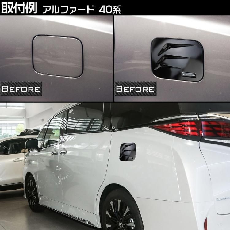アルファード 40系 タンクカバー 給油口 ロゴ付き ガソリン フューエルリッド ガーニッシュ ピアノブラック