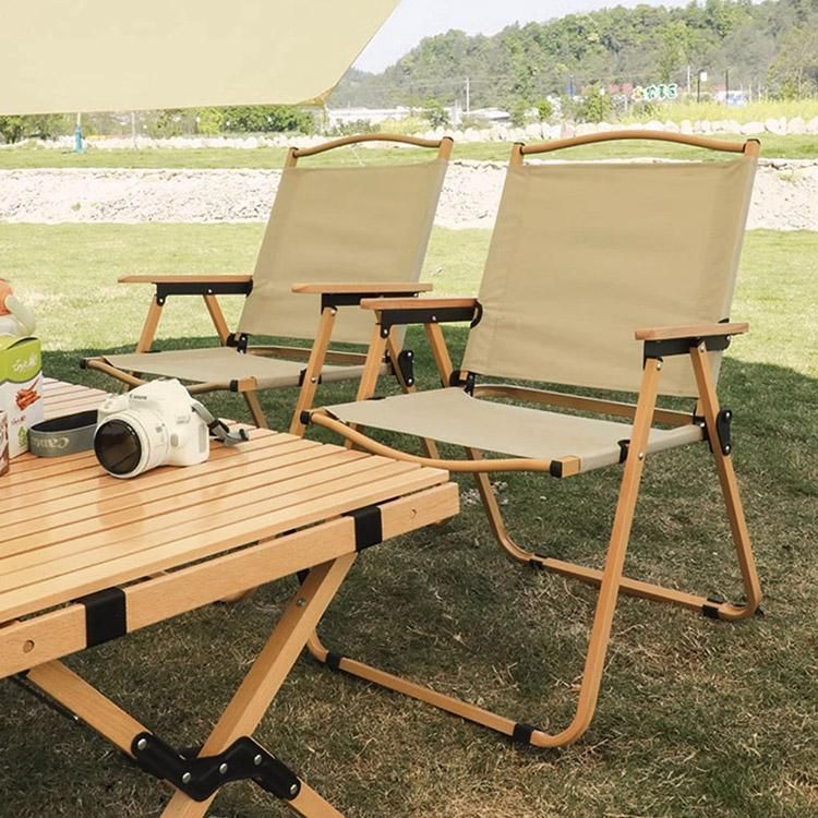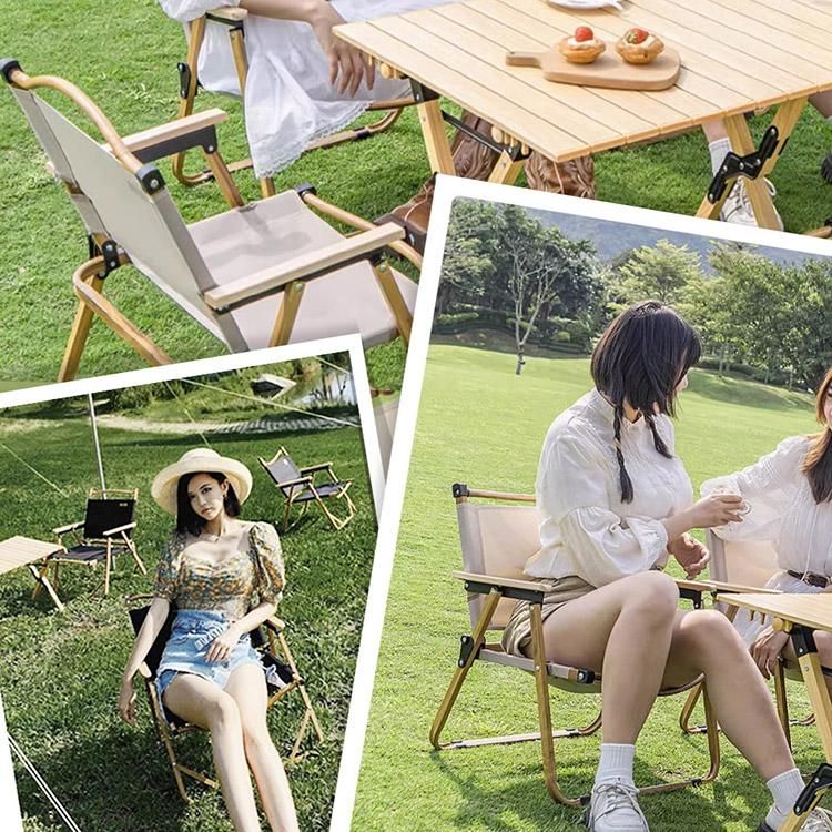 ■折りたたみ式はパッと開いて、丈夫で安定感がありセッティング簡単便利です。木製フレームがおしゃれに際立てます。