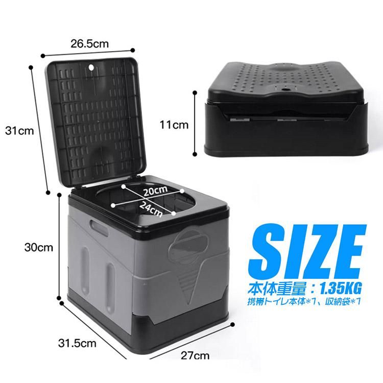 ■収納バッグ付属折りたたみ式簡易トイレ+処理袋20枚+凝固剤12回分き、1式セットの出品です。