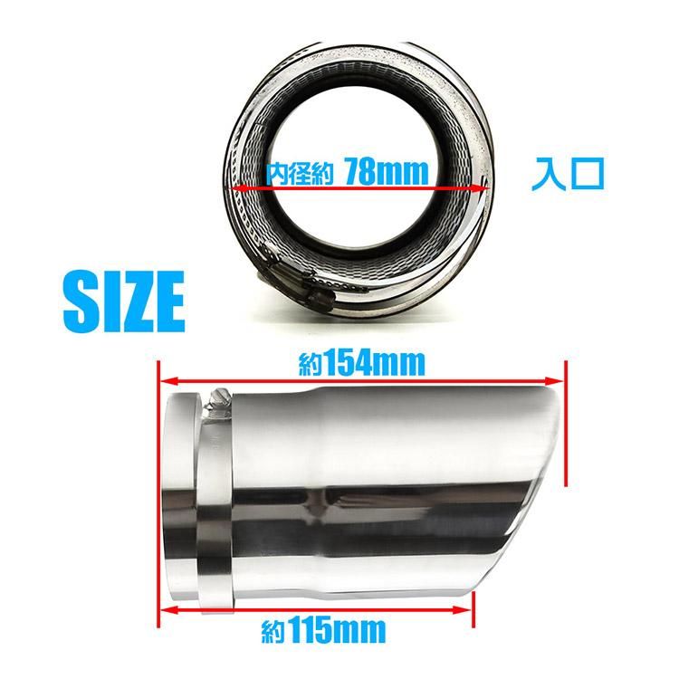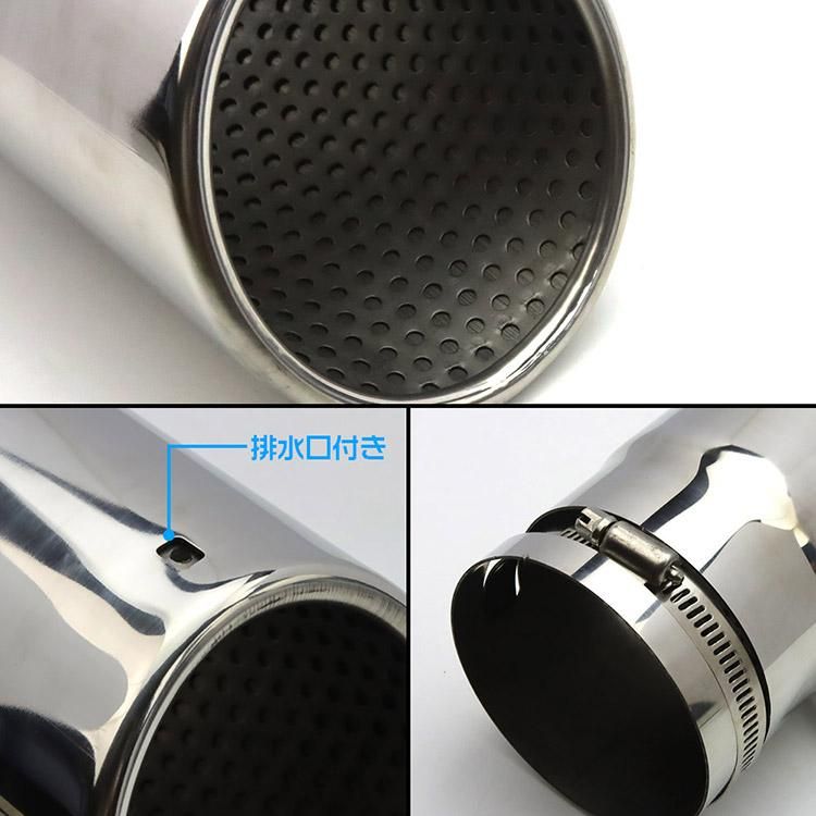 「脱落防止ワイヤー付き」マフラーカッター 汎用 シングル 排水口付き 外装 カスタムパーツドレスアップ 約55mm~77mm適用 シルバー