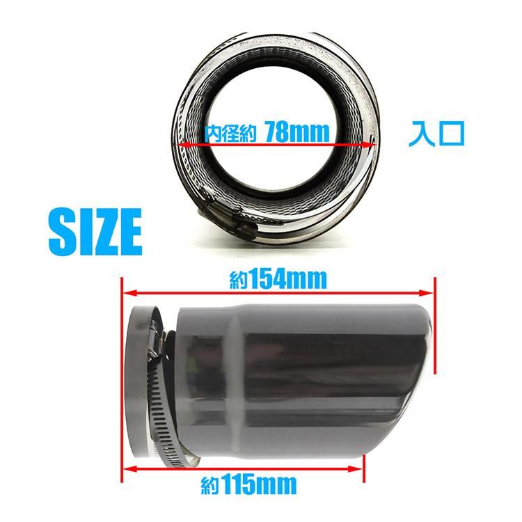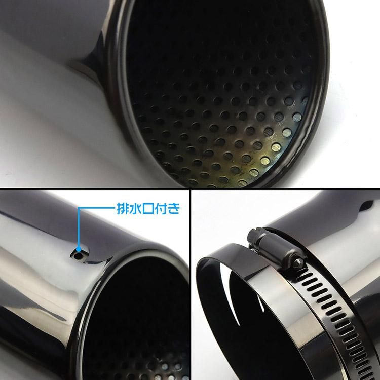 「脱落防止ワイヤー付き」マフラーカッター 汎用 シングル 排水口付き 外装 カスタムパーツドレスアップ 約55mm~77mm適用 ブラック