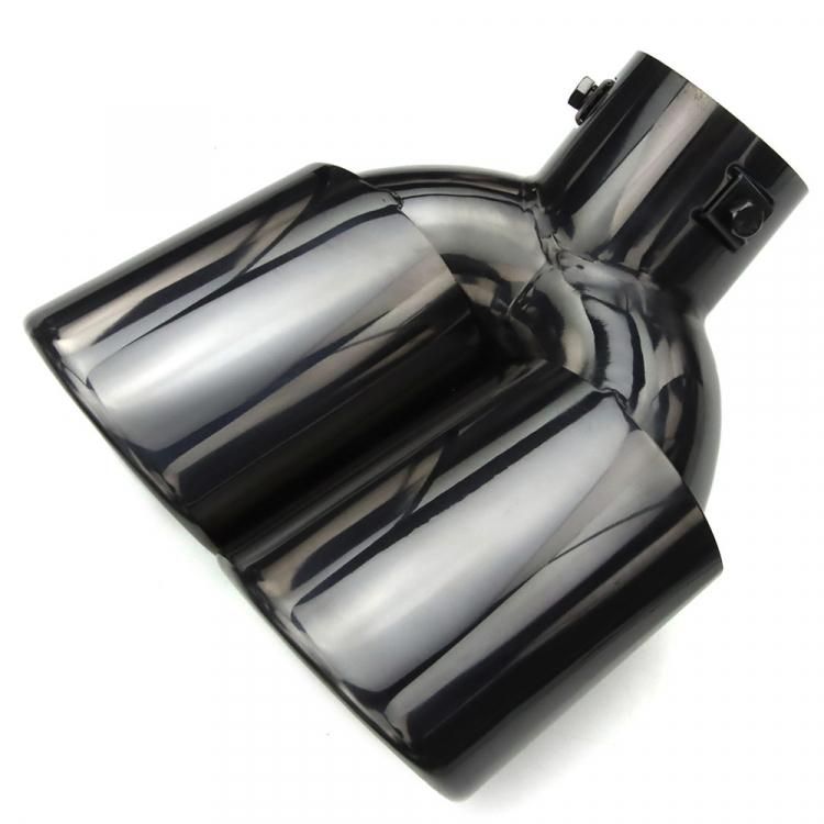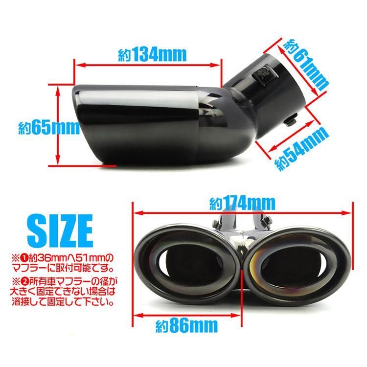 「脱落防止ワイヤー付き」汎用 約36mm~51mmのマフラー適用 マフラーカッター ブラック 下向き 2本出し 外装 カスタム ステンレス製