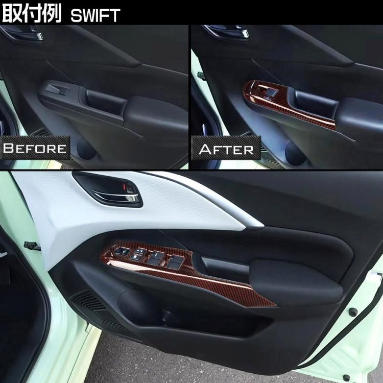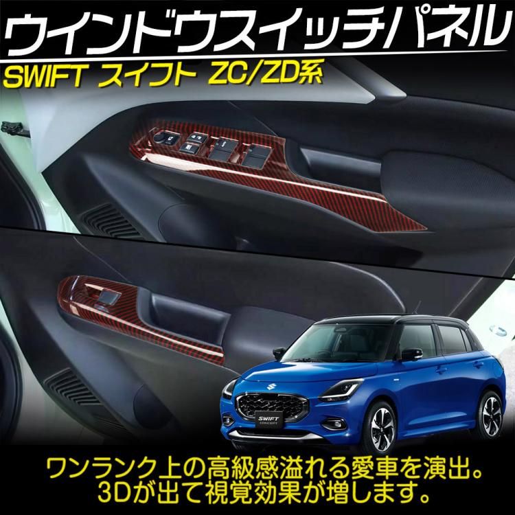 スズキ スイフト ZD系 ZC系 ウインドウスイッチパネル ガーニッシュ インテリアパネル カーボン調レッド