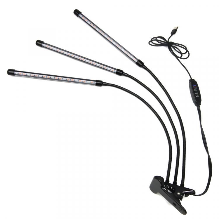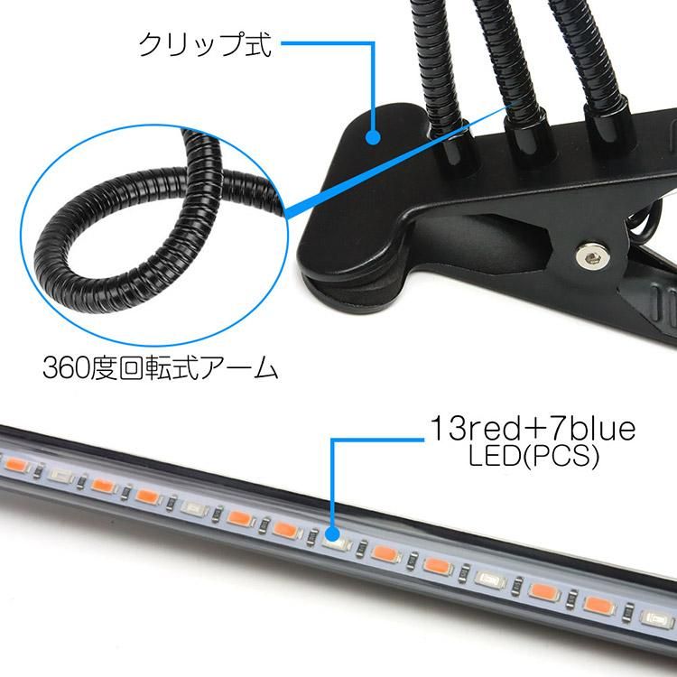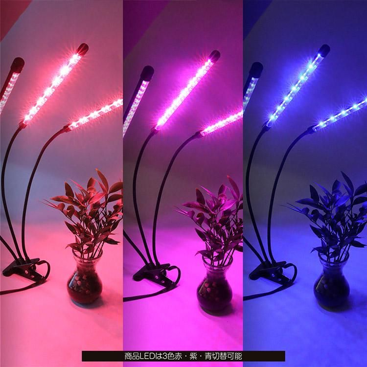 植物育成ライト 屋内植物ライトLED 10段階調光モード USB充電式 植物用 栽培ライト 360°グースネック 調光/切り替え/タイマー 3ヘッド式(赤・紫・青)