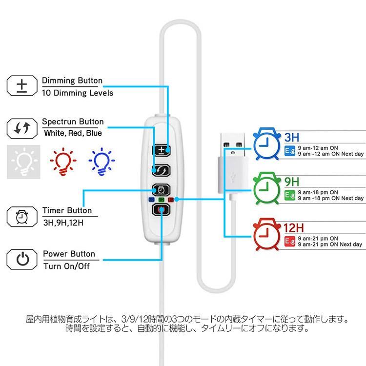 ■タイマー付き、自動で電源ON/OFF 24時間サイクルタイマー 3H/9H/12Hから照射時間のサイクルをお選びいただけます。