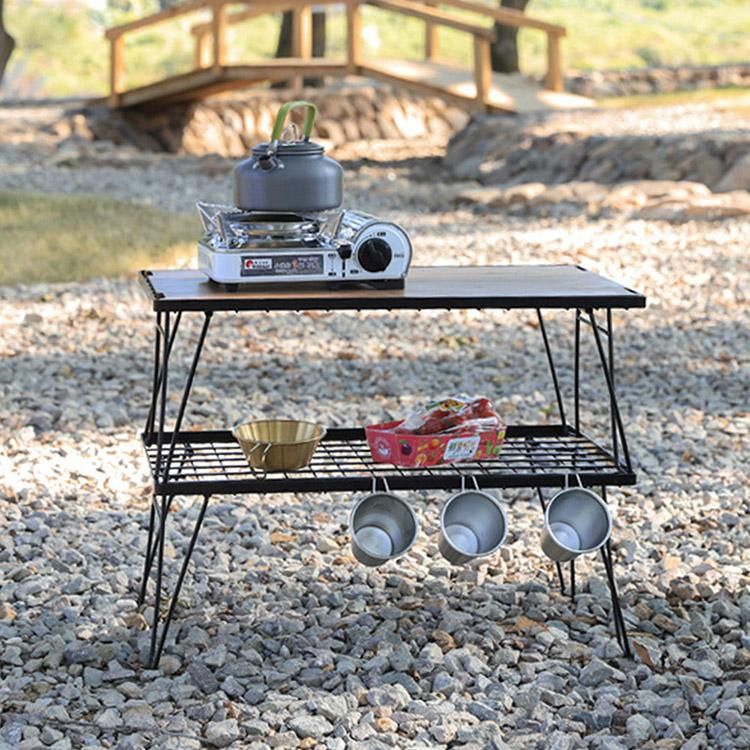 ■ラックとしてはもちろん、キャンプテーブルや調理台、さらにはクーラーボックスのスタンドとしても利用可能です。さまざまな場面で活躍するため、キャンプの作業効率が向上します。