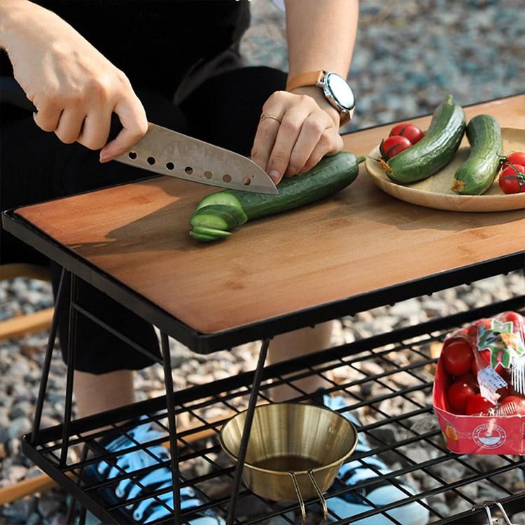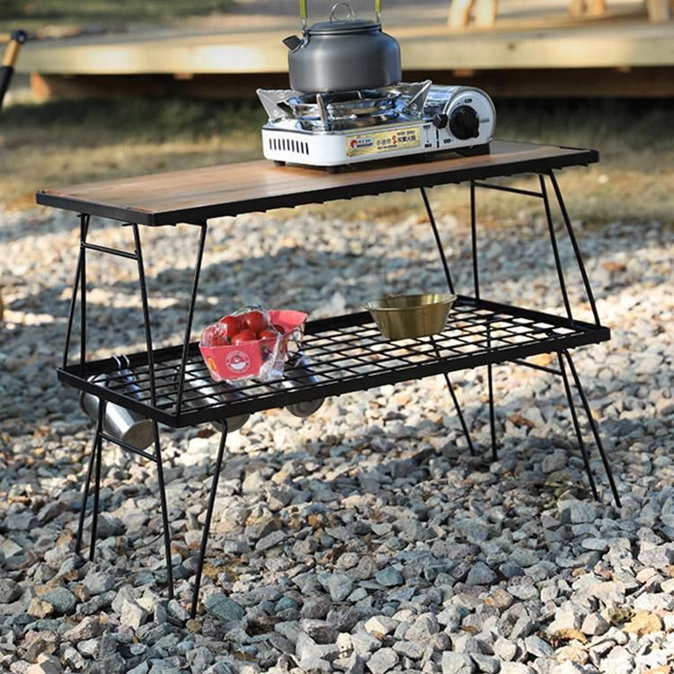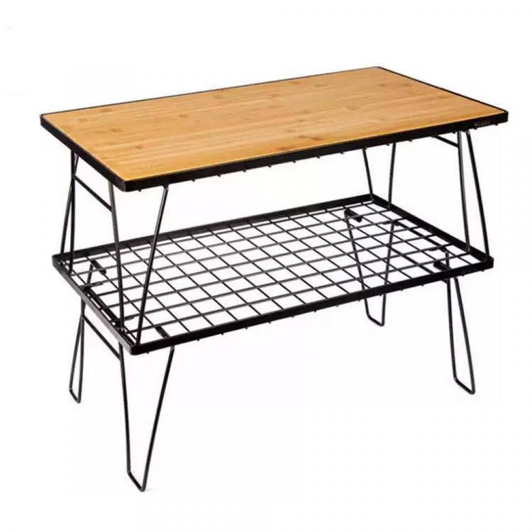 折りたたみフィールドラック 2個セット + 木製天板付き 収納バッグ付き キャンプ・アウトドア用 スタック可能 テーブル コンパクト収納
