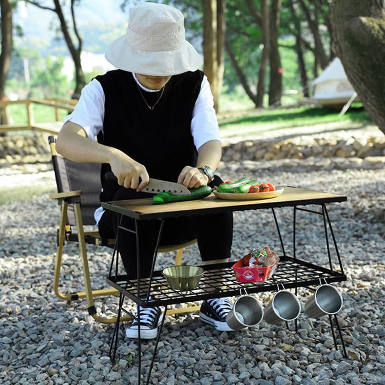 ■地面から荷物を上げることで、汚れや湿気を避けることができ、整理整頓もしやすくなります。キャンプやピクニック、バーベキューなど、さまざまなアウトドアシーンで活躍します。