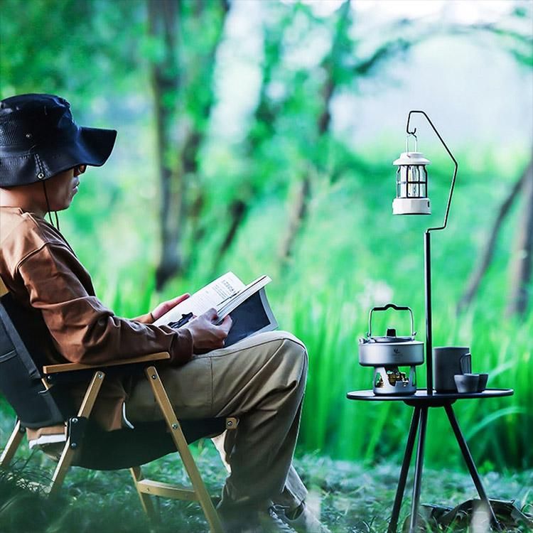 ■キャンプ、焚き火、ハイキングなどのアウトドアアクティビティだけでなく、室内の小型テーブルとしても使用可能です。ランタンスタンド付きなので、夜間の使用にも適しています。