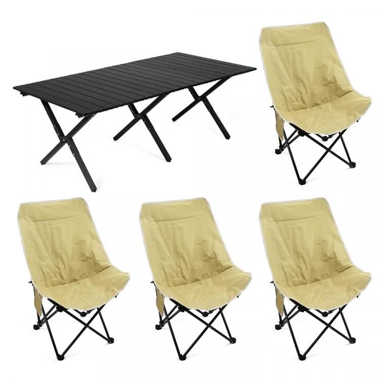 折りたたみテーブル&チェアセット 1テーブル4チェア 軽量コンパクト 簡単組立 収納バッグ付 (テーブル:120x60x45cm 黒 / チェア:55x90cm カーキ)