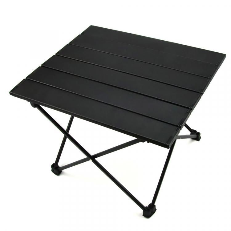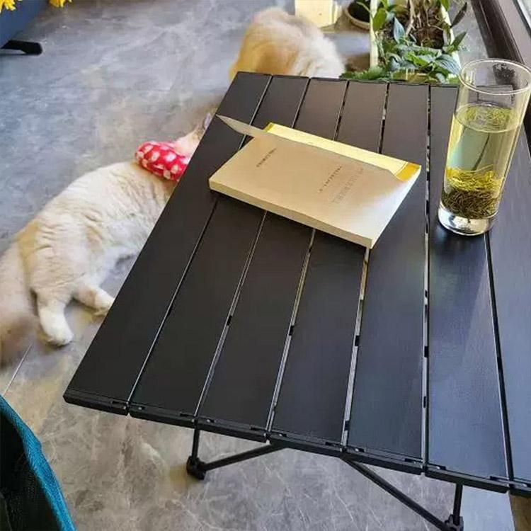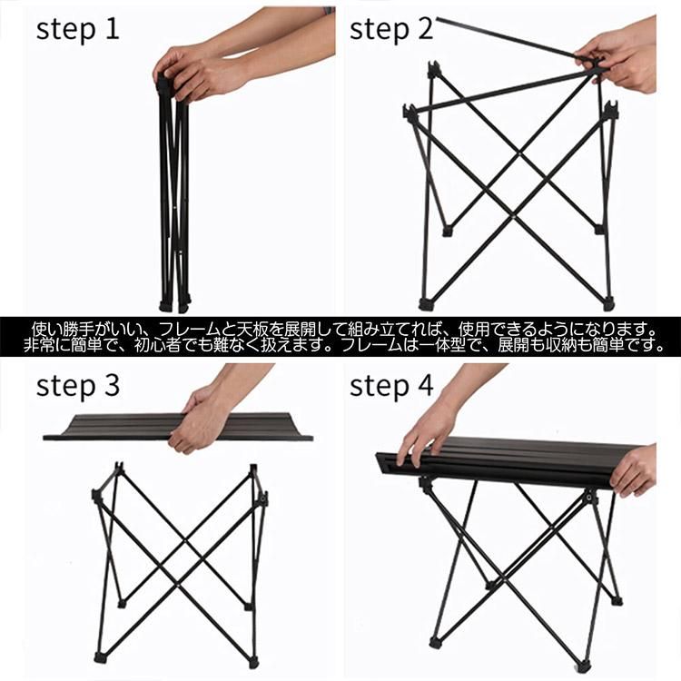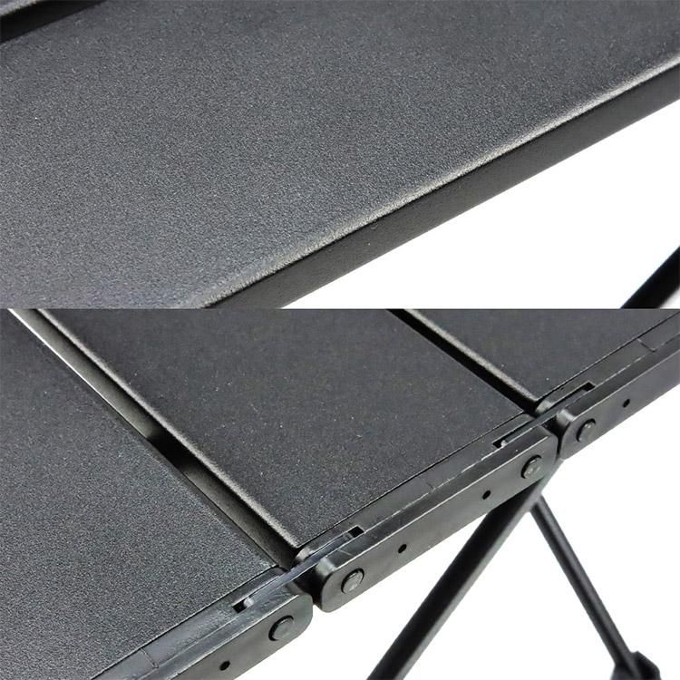 折りたたみテーブル ロールトップテーブル アルミ製 アウトドア コンパクト 超軽量 収納バッグ付 ブラック 組立簡単 キャンプテーブル