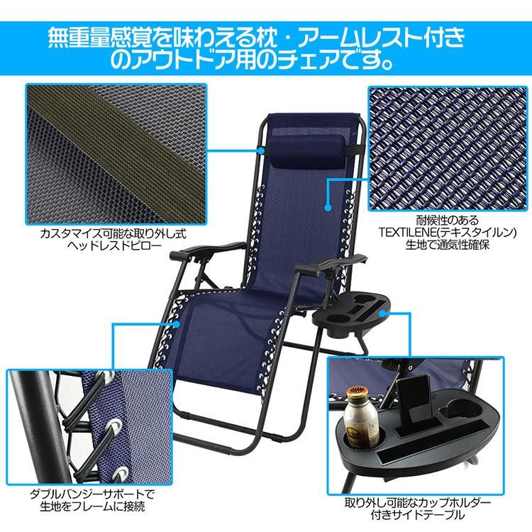 【アウトレット品】2脚セット アウトドアチェア リクライニングチェア 折りたたみ ゼログラビティチェア ベランダ 椅子 キャンプ ネイビー