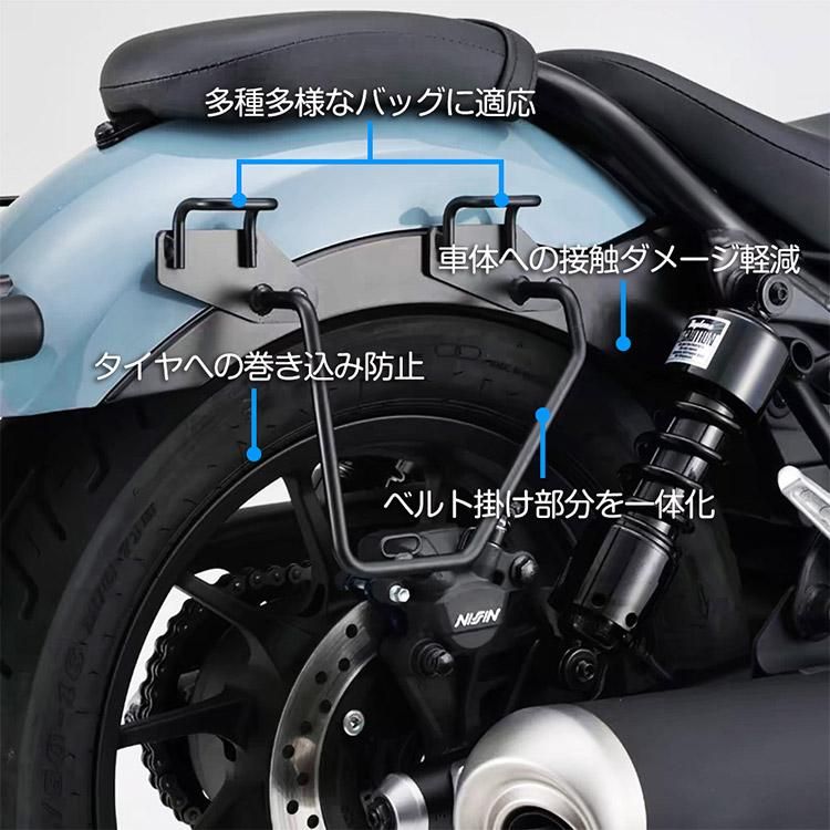 ■ 純正バッグだけでなく、汎用サドルバッグにも対応し、幅広いカスタムスタイルを楽しめます。