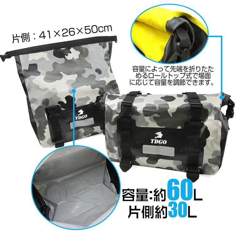 汎用 バイク用 サイドバッグ サドルバッグ PVCリアバッグ 30L×2個セット 防水 耐久 反光ストリップ付き 多機能収納 カモフラ柄