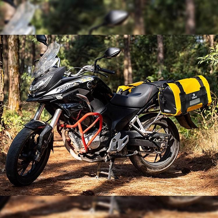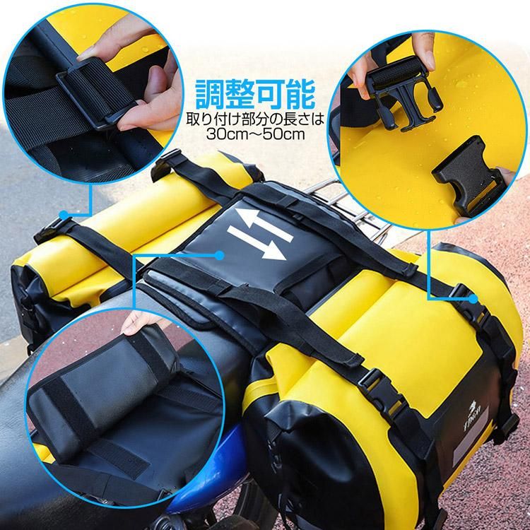 汎用 バイク用 サイドバッグ サドルバッグ PVCリアバッグ 30L×2個セット 防水 耐久 反光ストリップ付き 多機能収納 イエロー