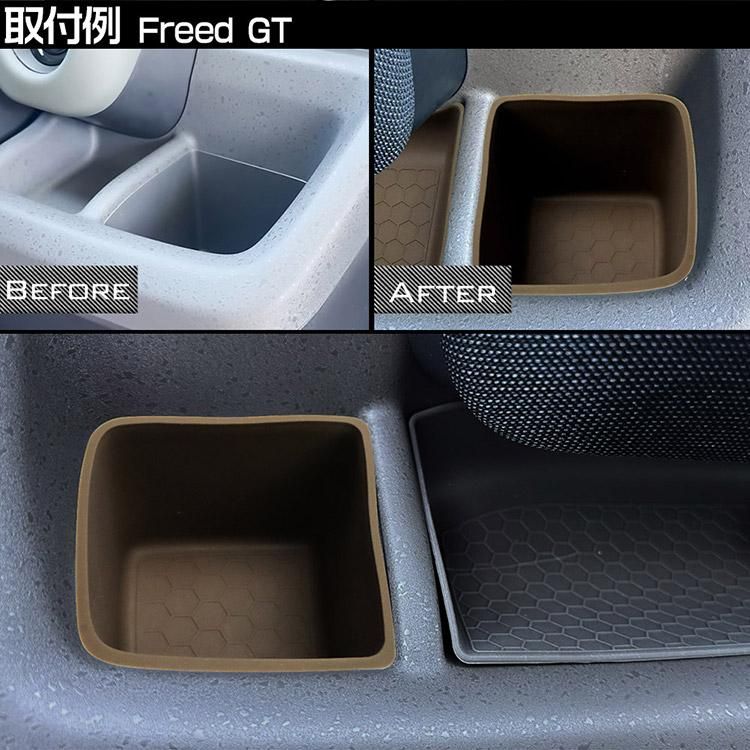 ホンダ 新型フリード GT1~GT8 GT系 オープントレイマット カップホルダー 滑り止めマット 助手席/運転席 小物入れ 収納トレイ ブラウン