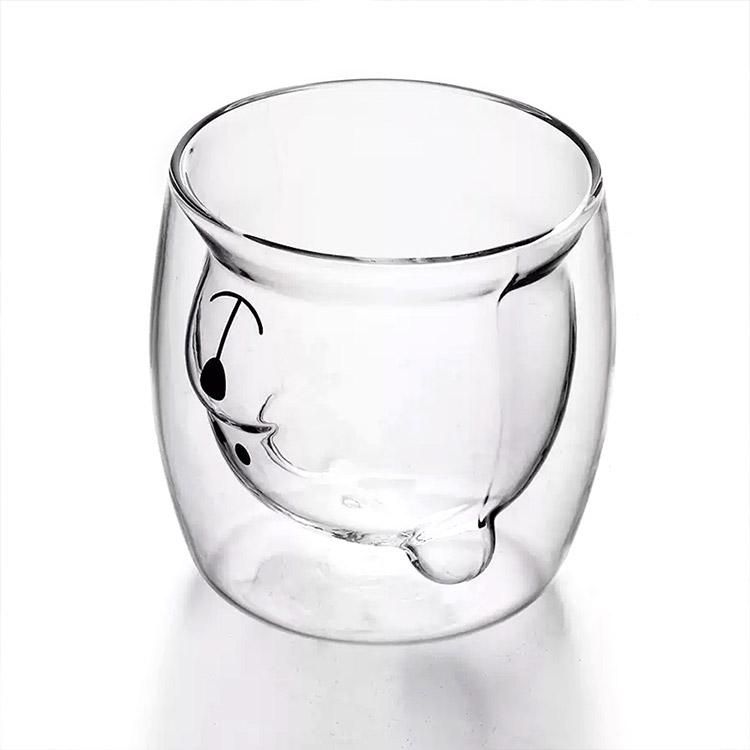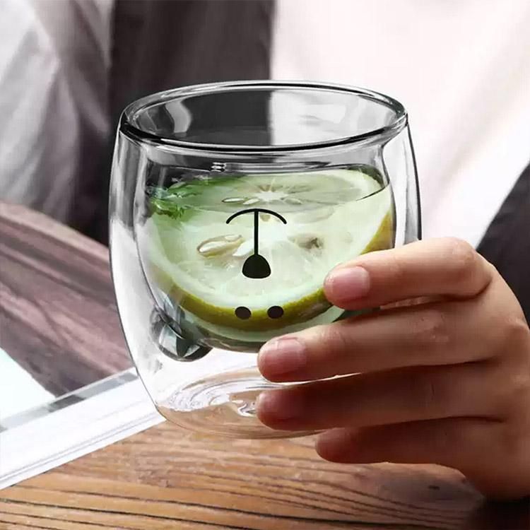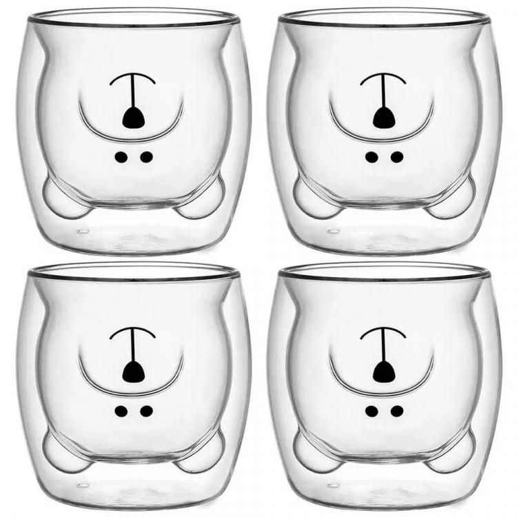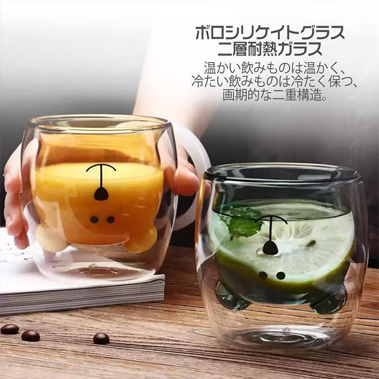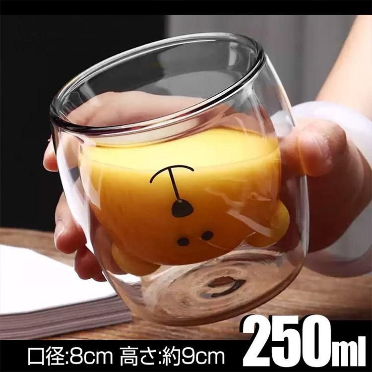 【4個セット】ダブルウォールグラス くま型 耐熱カップ かわいい 二重構造 保温・保冷 コーヒーグラス ティーカップ 250ml