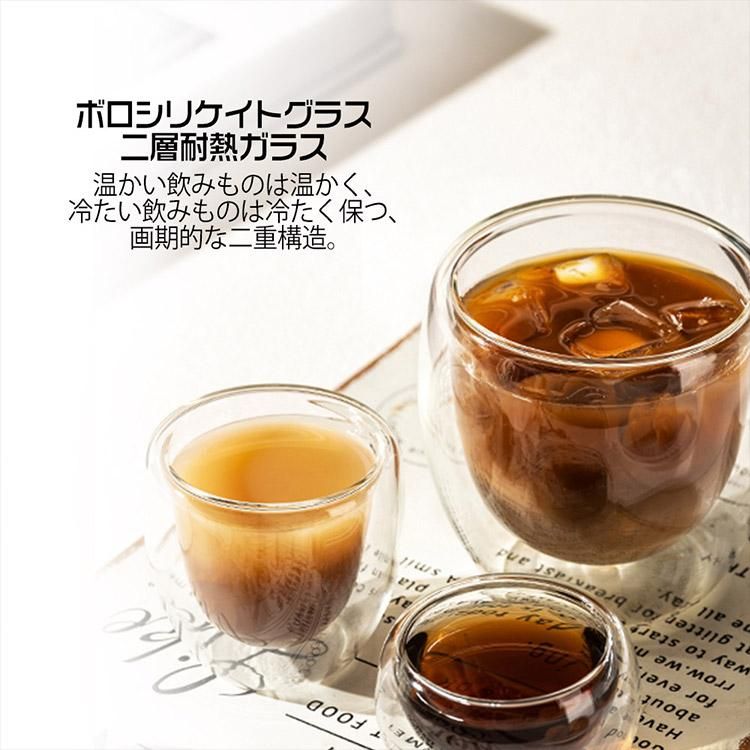 ダブルウォールグラス 二重構造 耐熱カップ 保温・保冷 コーヒーグラス ティーカップ タンブラー 2個セット 250ml