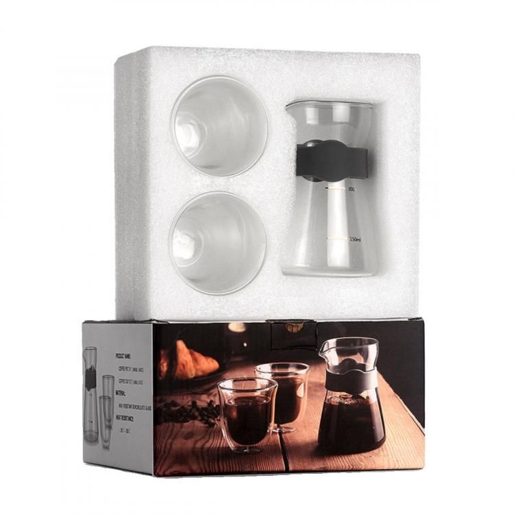 耐熱ガラス コーヒーサーバーセット(300mlポット+150ml二重構造カップ2個)カフェラテ・紅茶・エスプレッソ対応