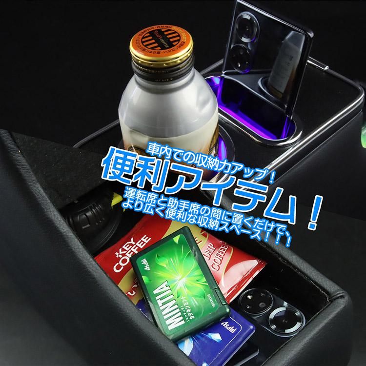 ■【高級感アップ】 表面に高級レザーを使用し、柔らかくて肌触りの良い仕上がりです。コンソールボックス 内部にLEDライトが付属しているので、車内の高級感が増しドレスアップできます。