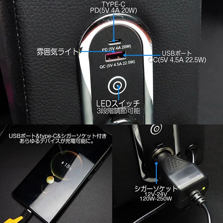 ■【QC急速充電USBポート&Type-C ポート&シガーソケット増設】改良版はフロントにQC 22.5W USBポートとTYPE-C 20Wポートを搭載します。スマートフォンやタブレットなどを急速充電できます。