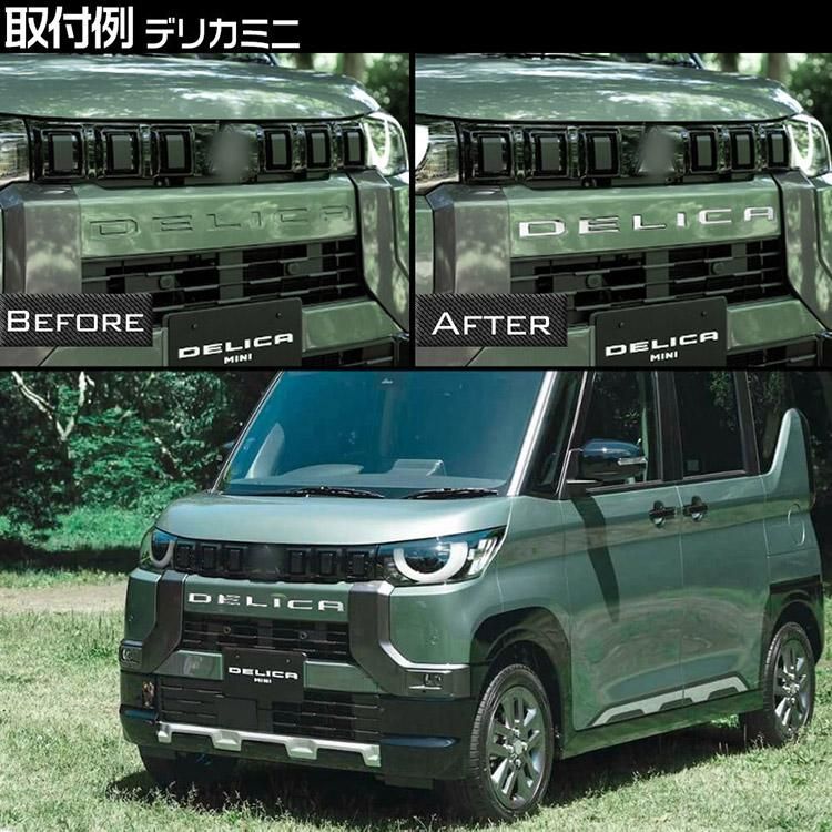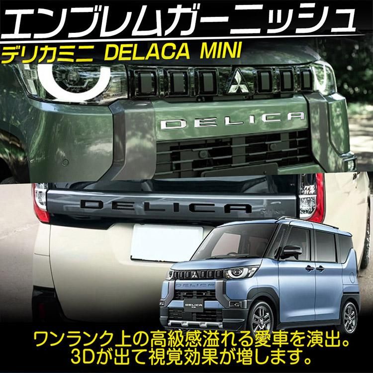 新型 デリカミニ 30系 フロント銀&リア黒 エンブレム ガーニッシュ DELICA MINI ロゴ ステッカー ピアノブラック 12枚