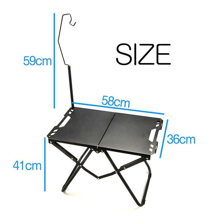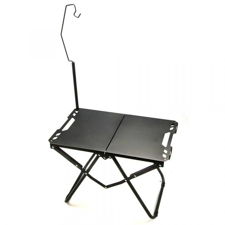 折りたたみ アウトドアテーブル ランプスタンドセット 軽量 コンパクト 耐荷重60kg 組み立て不要 ソロキャンプ ローテーブル 収納バッグ付き ブラック