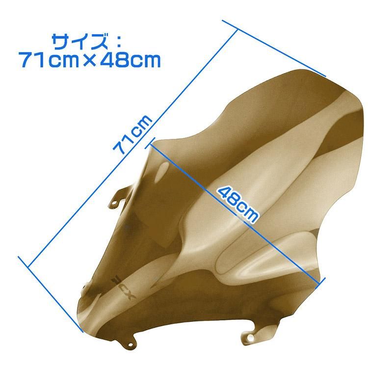 ■スクリーンはアクリル素材で全面スモーク(ブラウン)茶色のロング仕様、サイズは縦長71cm、横幅は48cm。