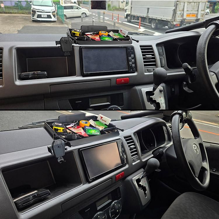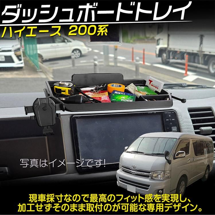 新型 ハイエース 200系 標準ボディ ダッシュボードトレイ 車内収納ボックス 3Dトレイ カー用品 携帯ホルダー スマホホルダー付き 360度回転